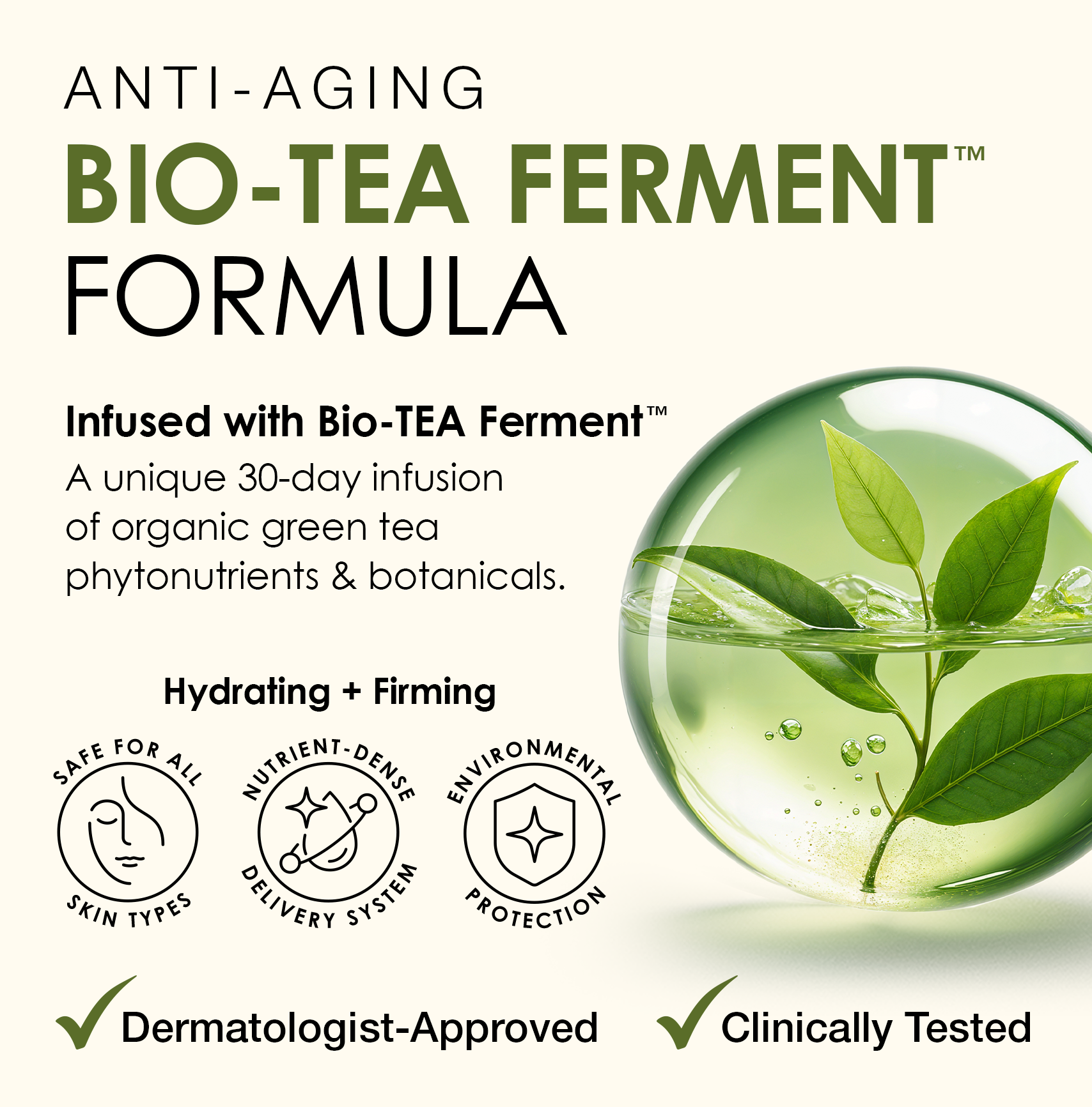- Bio-TEA Ferment™ Our 30-day infusion of organic green tea phytonutrients and botanicals for a concentrated dermal nutrient-dense delivery system that helps to reduce the appearance of fine lines and wrinkles.