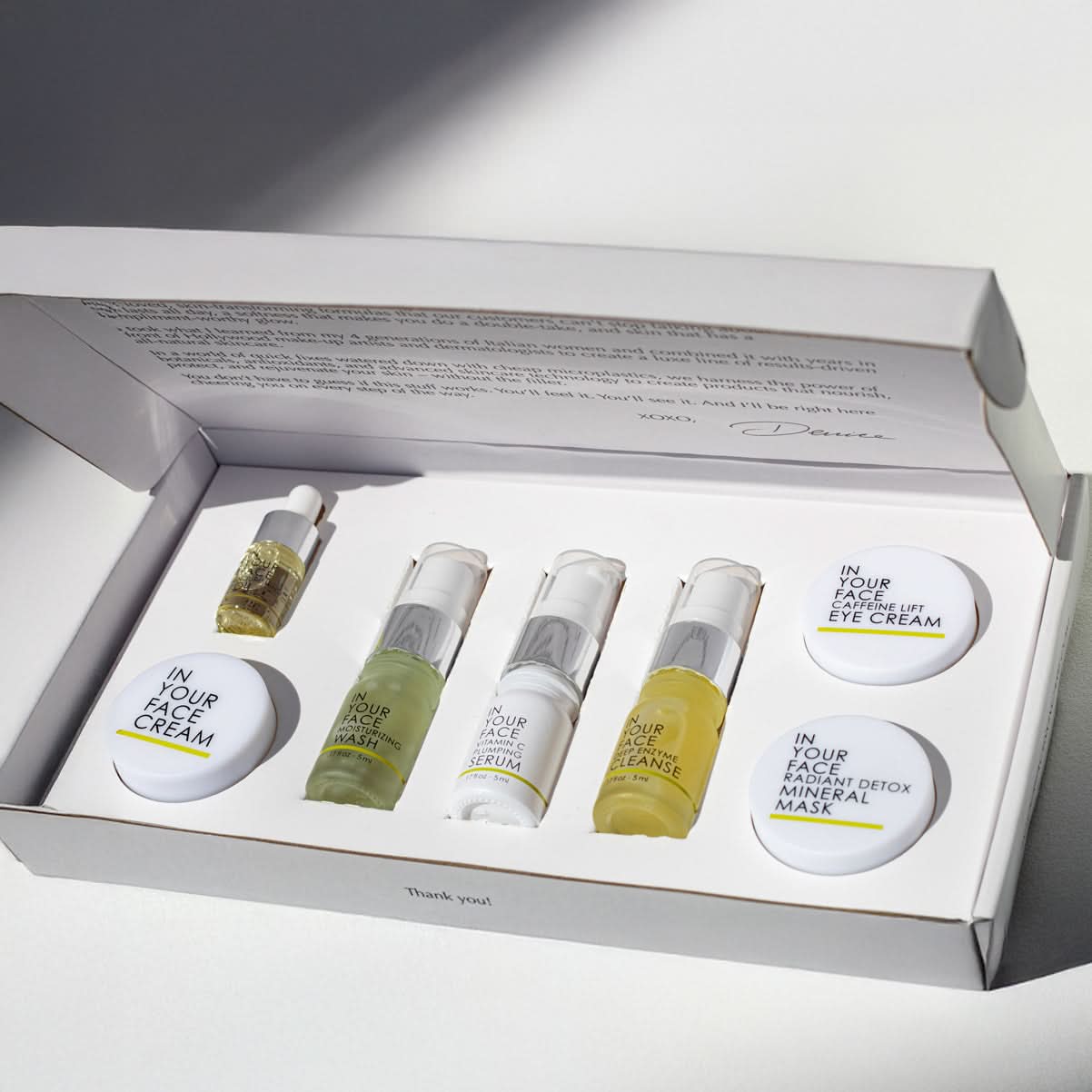 Backed by Science, Rooted in Mother Nature. IN YOUR FACE SKINCARE ESSENTIALS DISCOVERY SET delivers results.