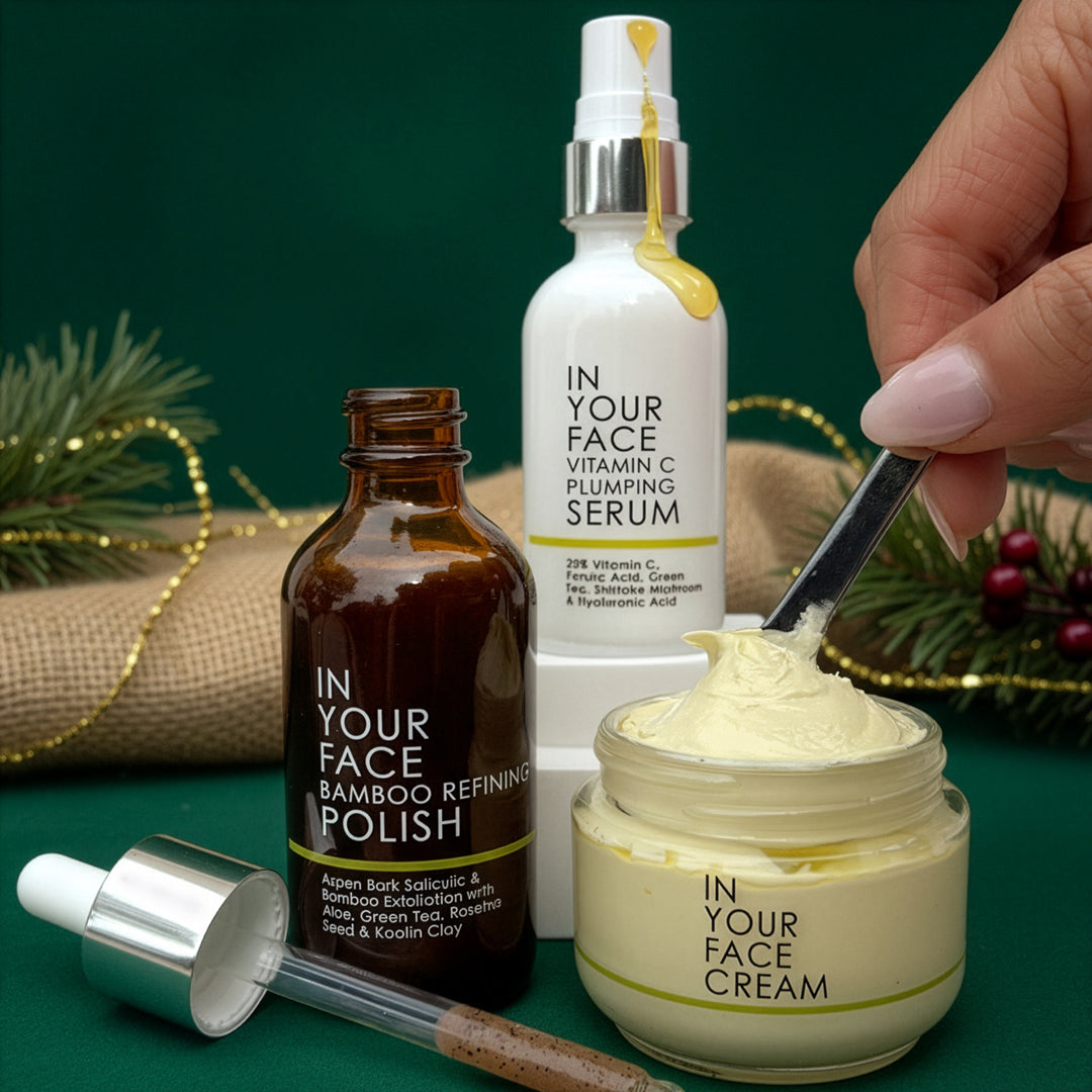 You also get a boost of firmness, brightening, and hydration with our 20% Vitamin C serum with hyaluronic acid.