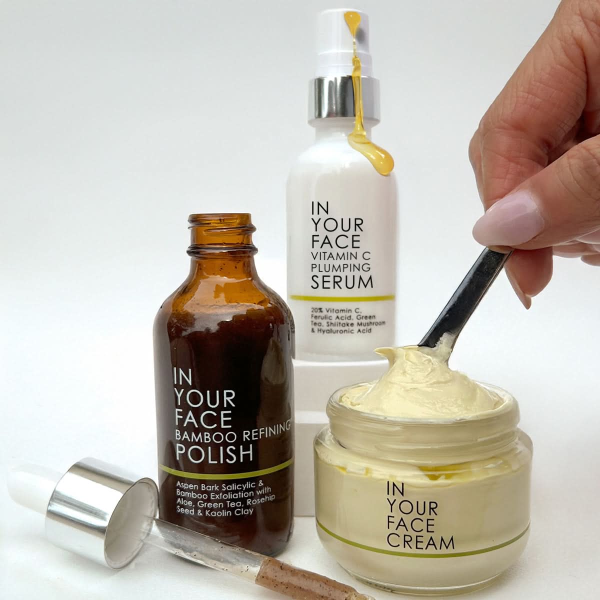 You also get a boost of firmness, brightening, and hydration with our 20% Vitamin C serum with hyaluronic acid.